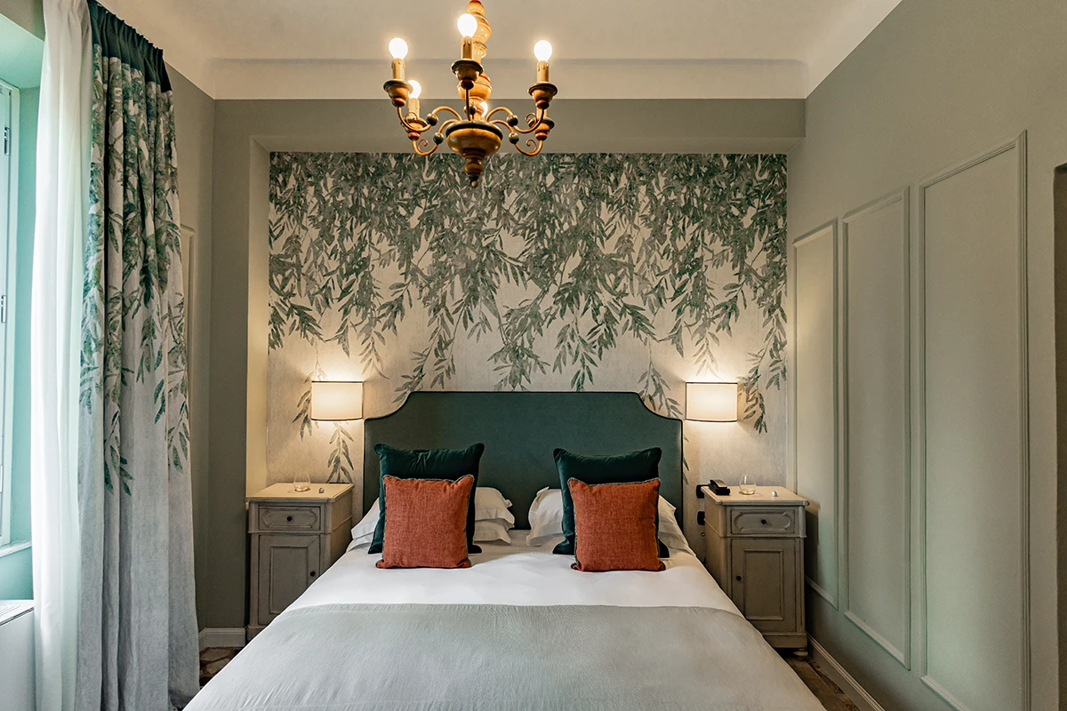 Double room with view, cozy sitting area with sofa and private bathroom.